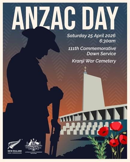 Post-Service: Shortly after the ANZAC Day Dawn Service, Singapore History Consultants will conduct free guided tours of Kranji War Cemetery. The tours will take approximately 30 minutes and participants will have the opportunity to learn about the Cemetery, gain insights into some of the events of the past and the role played by Australian and New Zealand personnel during World War II.